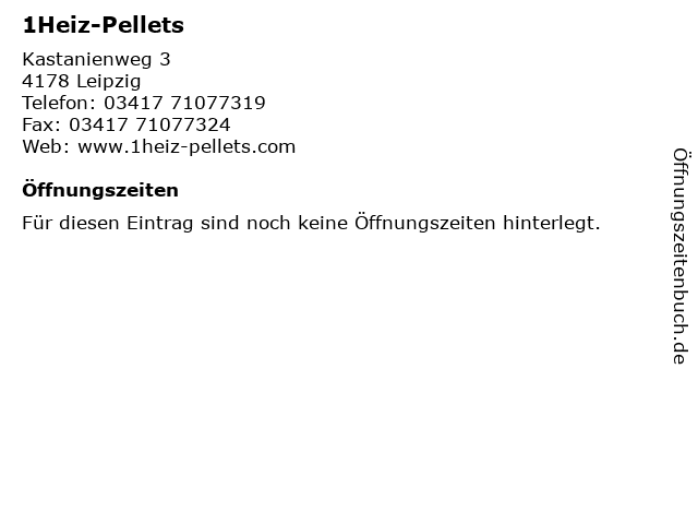 | Öffnungszeiten 1Heiz-Pellets in Leipzig anzeigen | |