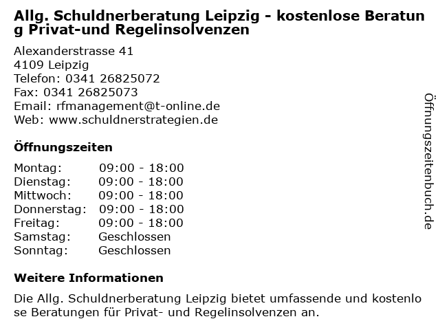 Branchen & Suchbegriffe zu Allg. Schuldnerberatung Leipzig - kostenlose Beratung Privat-und Regelinsolvenzen:allg., beratung, kostenlose, privat, regelinsolvenzen, schuldnerberatung |