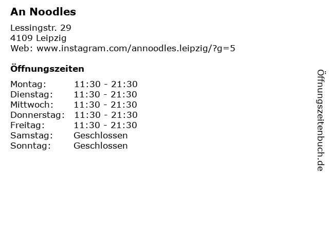 | Öffnungszeiten An Noodles in Leipzig anzeigen | |