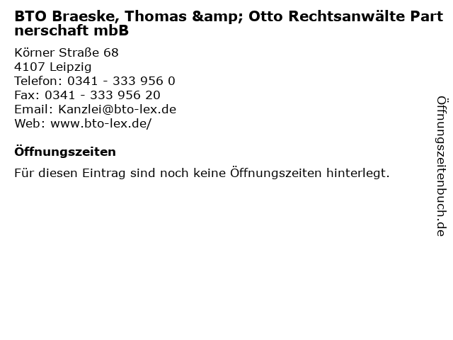 | BTO Braeske, Thomas & Otto Rechtsanwälte Partnerschaft mbB anrufen | |