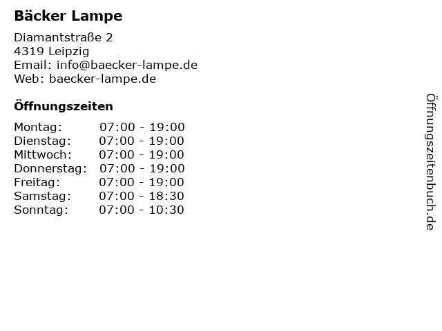 | Öffnungszeiten Bäcker Lampe in Leipzig anzeigen | |