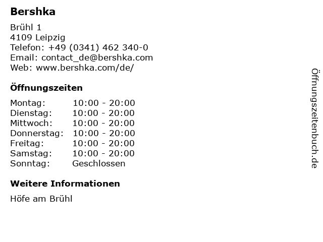 | Öffnungszeiten Bershka in Leipzig anzeigen | |