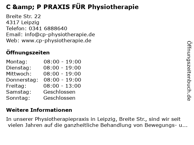 Branchen & Suchbegriffe zu C & P PRAXIS FÜR Physiotherapie:physiotherapie, praxis |