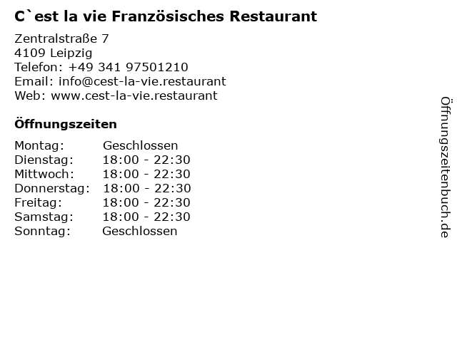 Öffnungszeiten C`est la vie Französisches Restaurant in Leipzig anzeigen