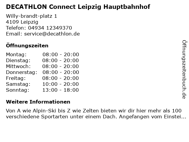 Branchen & Suchbegriffe zu DECATHLON Connect Leipzig Hauptbahnhof:connect, decathlon, fahrradgeschäft, hauptbahnhof, sportartikelgeschäft |