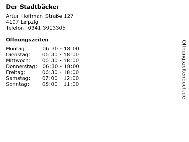 | Öffnungszeiten Der Stadtbäcker in Leipzig anzeigen | |