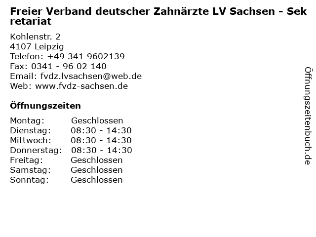 Branchen & Suchbegriffe zu Freier Verband deutscher Zahnärzte LV Sachsen - Sekretariat:deutscher, freier, lv, sachsen, sekretariat, verband, wirtschaftsverband, zahnärzte |