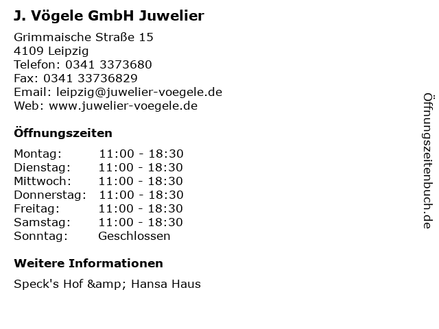 Öffnungszeiten J. Vögele GmbH Juwelier in Leipzig anzeigen | |