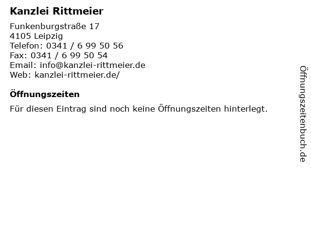 | Öffnungszeiten Kanzlei Rittmeier in Leipzig anzeigen | |
