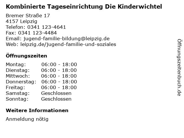 1 Kombinierte Tageseinrichtung Betriebskindertageseinrichtung (Entfernung: 1,26 km) Delitzscher Straße 141, 04129 Leipzig 3 Kombinierte Tageseinrichtung Wiederitzscher Knirpsenwelt (Entfernung: 1,94 km) Zur Schule 10a, 04158 Leipzig 5 Kombinierte Tageseinrichtung Kinderhaus Sonnenmond (privat) (Entfernung: 3,73 km) Ziolkowskistraße 15, 04357 Leipzig 6 |