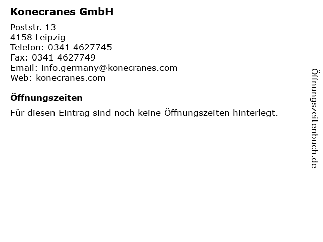 | Öffnungszeiten Konecranes GmbH in Leipzig anzeigen | |