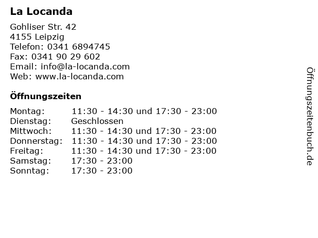 | Öffnungszeiten La Locanda in Leipzig anzeigen | |