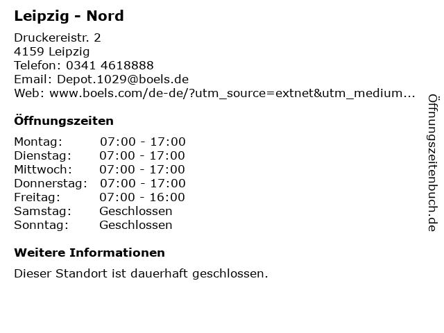 | Öffnungszeiten Leipzig - Nord in Leipzig anzeigen | |