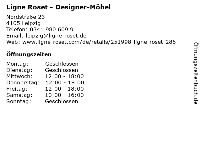 | Öffnungszeiten Ligne Roset - Designer-Möbel in Leipzig anzeigen | |