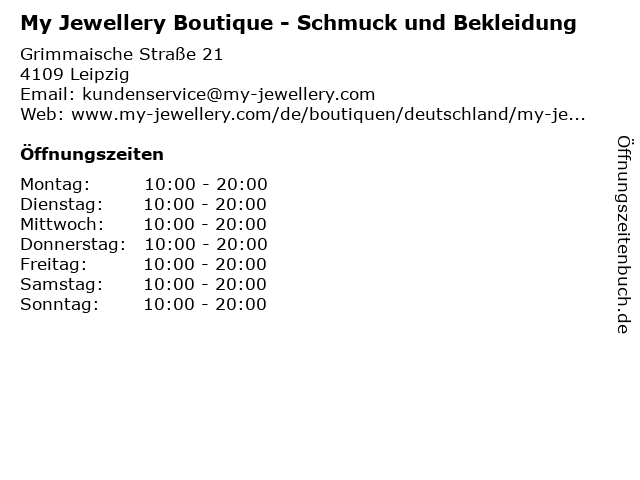 | Öffnungszeiten My Jewellery Boutique - Schmuck und Bekleidung in Leipzig anzeigen | |