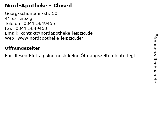| Öffnungszeiten Nord-Apotheke - Closed in Leipzig anzeigen | |