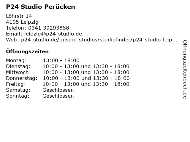 | Öffnungszeiten P24 Studio Perücken in Leipzig anzeigen | |