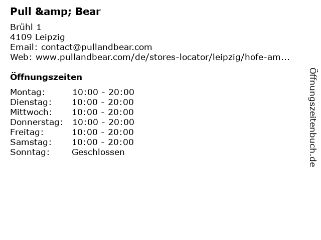 | Öffnungszeiten Pull & Bear in Leipzig anzeigen | |