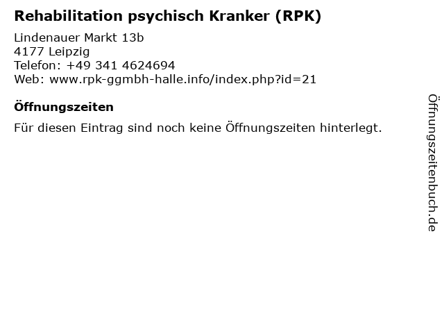 | Rehabilitation psychisch Kranker (RPK) anrufen | |