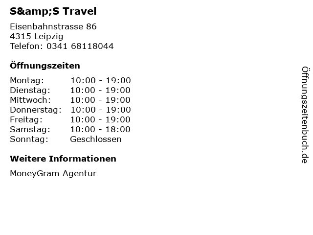 | Öffnungszeiten S&S Travel in Leipzig anzeigen | |