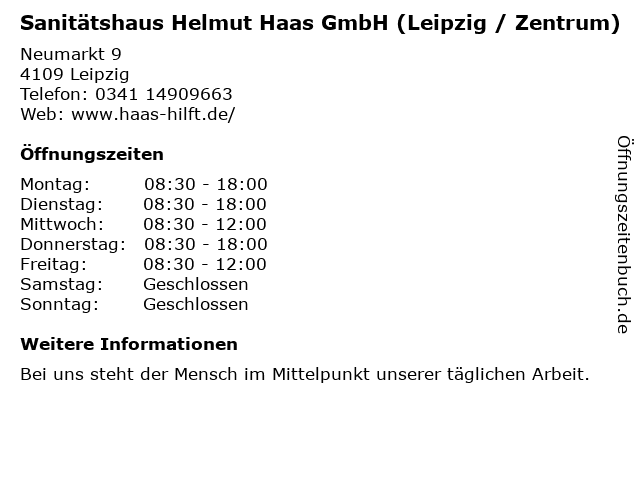 Branchen & Suchbegriffe zu Sanitätshaus Helmut Haas GmbH (Leipzig / Zentrum):haas, helmut, sanitätshaus, zentrum |