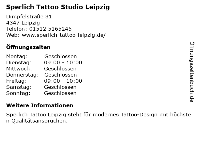 Branchen & Suchbegriffe zu Sperlich Tattoo Studio Leipzig:sperlich, studio, tattoo, tattoo & piercing shop |