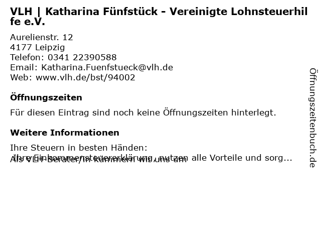 Branchen & Suchbegriffe zu VLH | Katharina Fünfstück - Vereinigte Lohnsteuerhilfe e.V.:e.v., fünfstück, katharina, lohnsteuerhilfe, vereinigte, vlh |