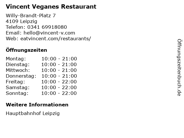 | Öffnungszeiten Vincent Veganes Restaurant in Leipzig anzeigen | |