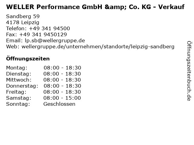 1 WELLER Performance GmbH & Co. KG - Teile & Zubehör,Service (Entfernung: 0,03 km) Sandberg 59, 04178 Leipzig 6 |