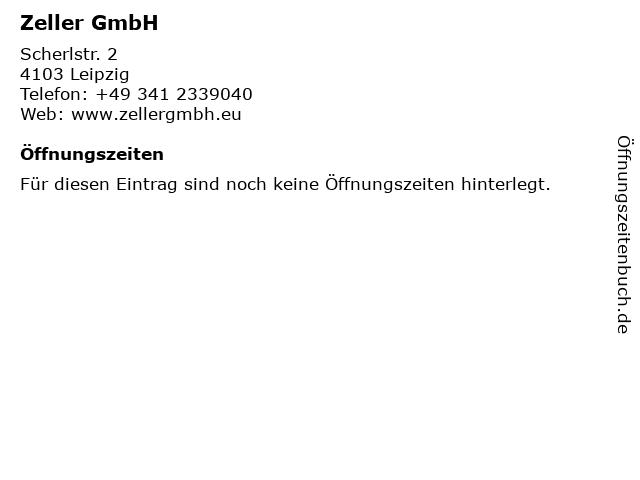 | Öffnungszeiten Zeller GmbH in Leipzig anzeigen | |