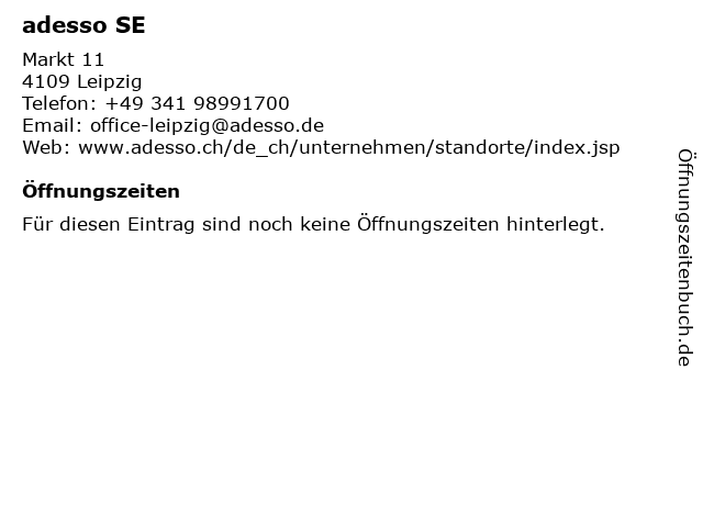 | Öffnungszeiten adesso SE in Leipzig anzeigen | |