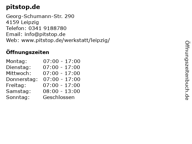 | Öffnungszeiten pitstop.de in Leipzig anzeigen | |