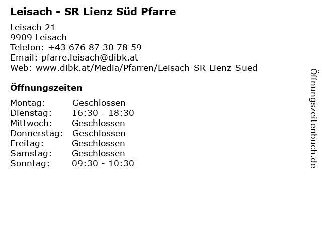 Branchen & Suchbegriffe zu Leisach - SR Lienz Süd Pfarre:amt, kirche, kirchlich, leisach, lienz, pfarre, pfarrei, sr, süd |
