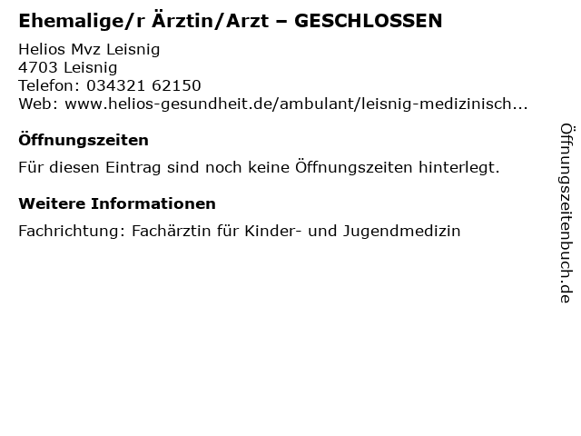 Branchen & Suchbegriffe zu Ehemalige/r Ärztin/Arzt – GESCHLOSSEN:ehemalige/r, geschlossen, ärztin/arzt, – |