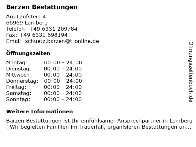 | Öffnungszeiten Barzen Bestattungen in Lemberg anzeigen | |