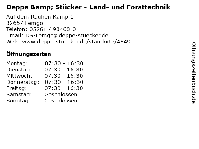 Öffnungszeiten Deppe & Stücker - Land- und Forsttechnik in Lemgo anzeigen