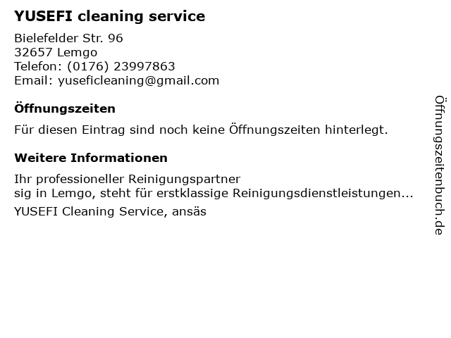 | Telefonnummer YUSEFI cleaning service in Lemgo ((0176) 23997863) anrufen | |
