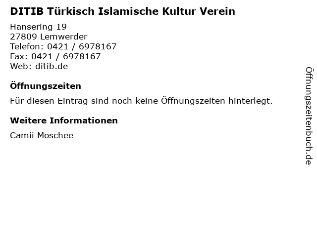 | DITIB Türkisch Islamische Kultur Verein anrufen | |
