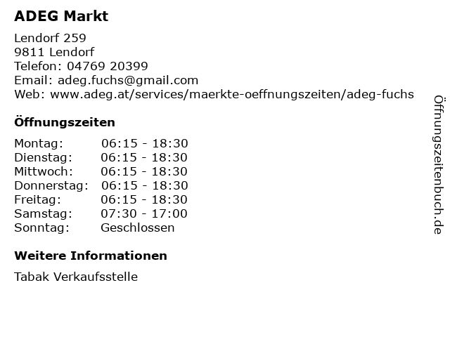 | Öffnungszeiten ADEG Markt in Lendorf anzeigen | |