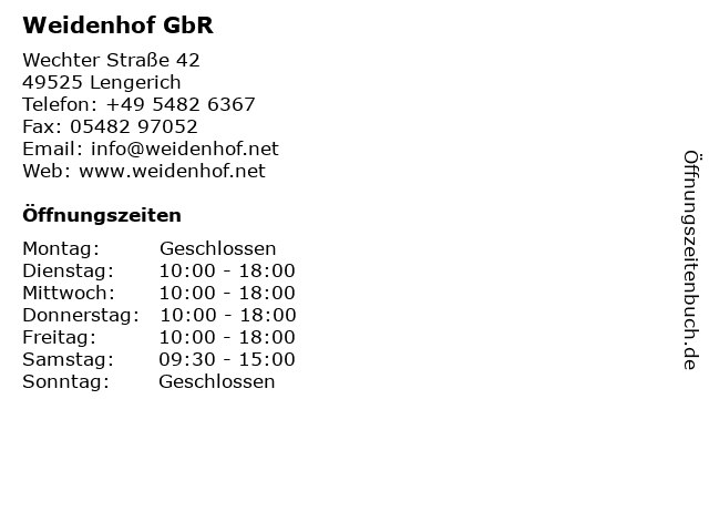 | Öffnungszeiten Weidenhof GbR in Lengerich anzeigen | |