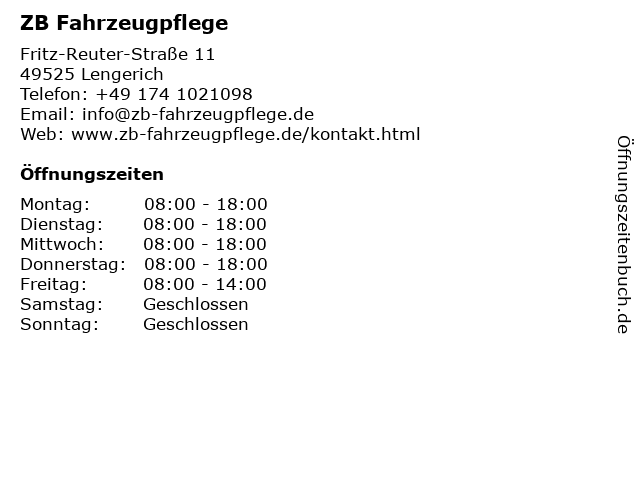 | Öffnungszeiten ZB Fahrzeugpflege in Lengerich anzeigen | |
