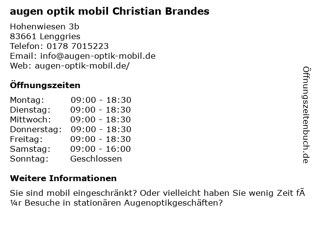 Branchen & Suchbegriffe zu augen optik mobil Christian Brandes:augen, brandes, christian, mobil, optik |
