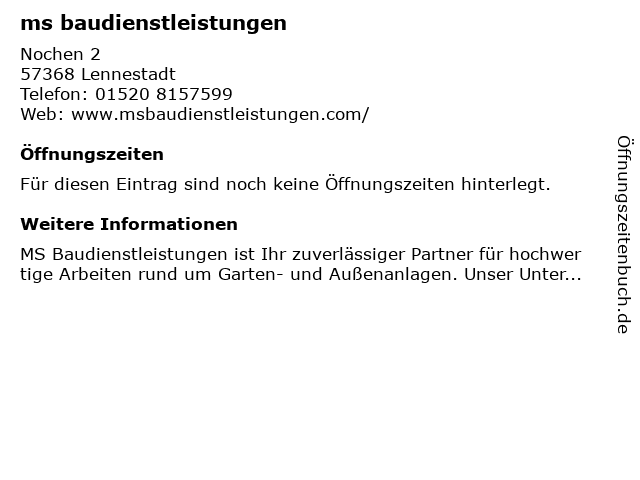 Öffnungszeiten ms baudienstleistungen