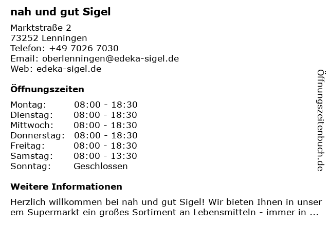 | Öffnungszeiten nah und gut Sigel in Lenningen anzeigen | |