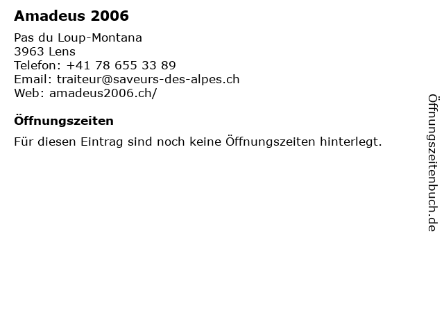 | Telefonnummer Amadeus 2006 in Lens (+41 78 655 33 89) anrufen | |