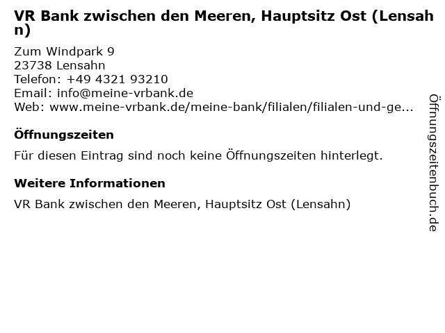 | VR Bank zwischen den Meeren, Hauptsitz Ost (Lensahn) anrufen | |