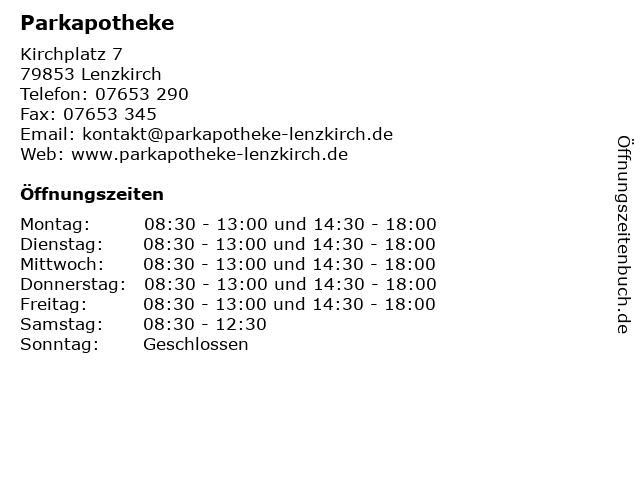 | Öffnungszeiten Parkapotheke in Lenzkirch anzeigen | |