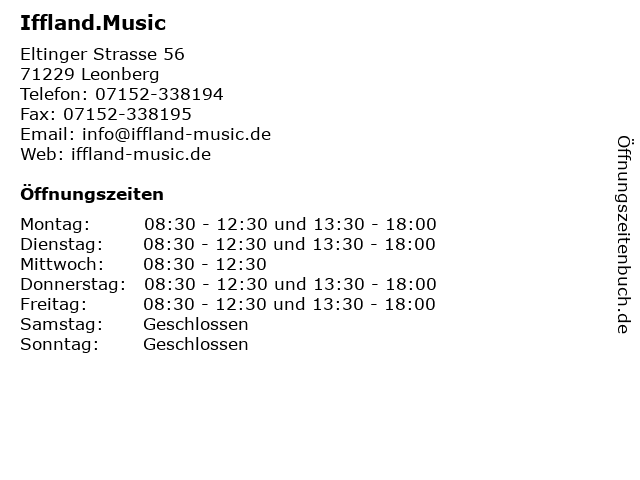 | Öffnungszeiten Iffland.Music in Leonberg anzeigen | |