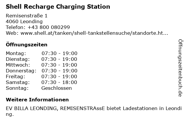 Shell Recharge Charging Station in Leonding: Telefonnummer, Öffnungszeiten und Adresse