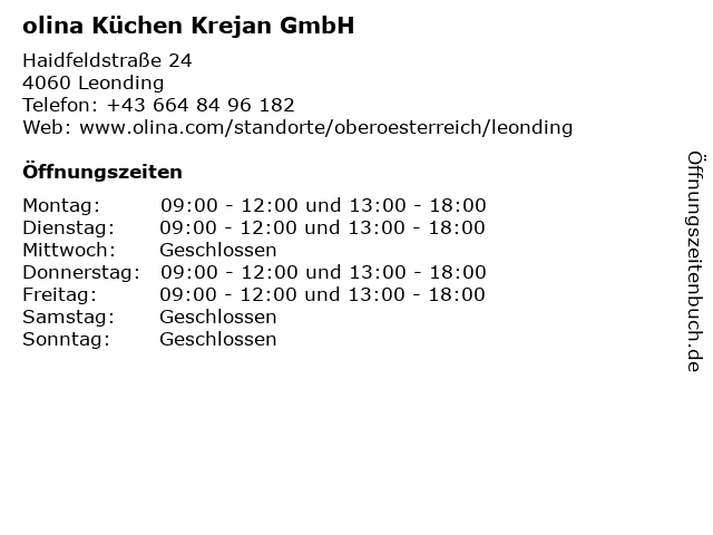 | Öffnungszeiten olina Küchen Krejan GmbH in Leonding anzeigen | |